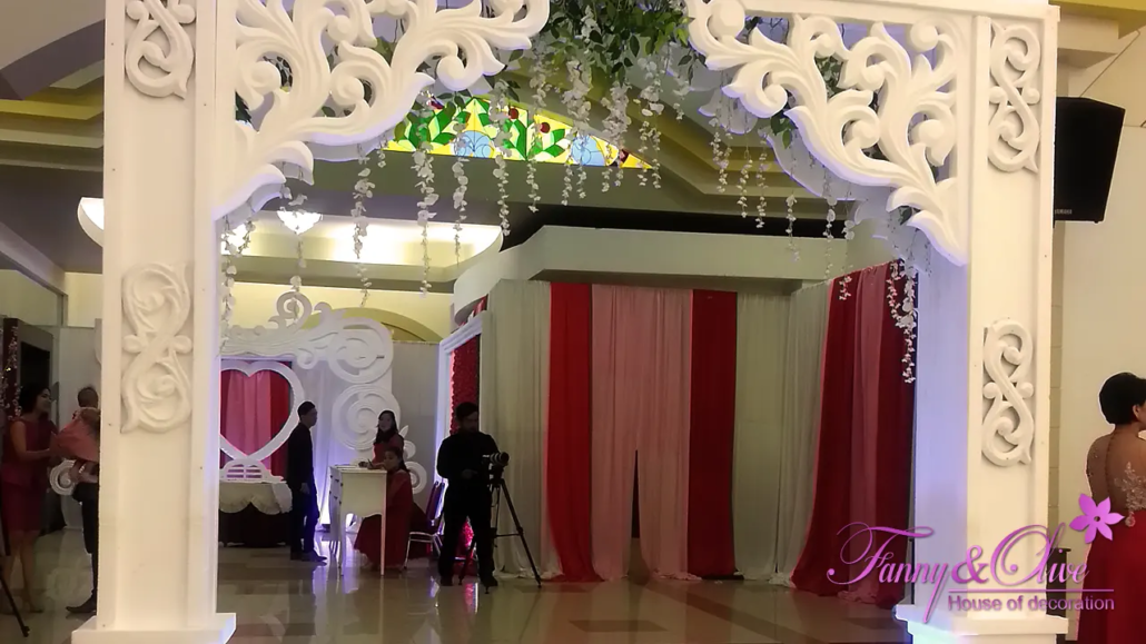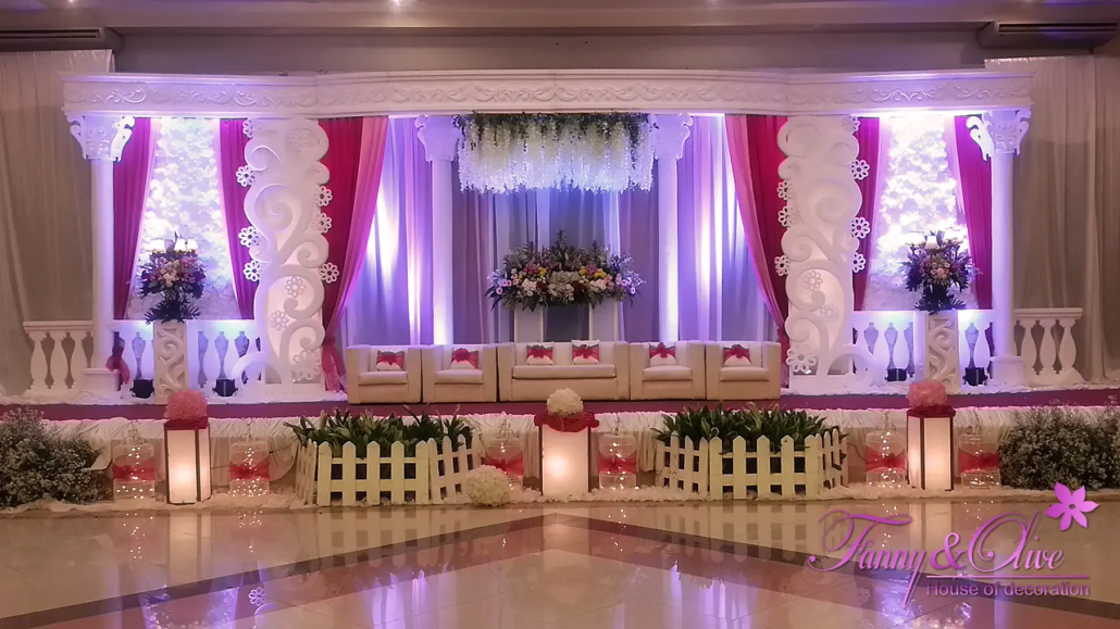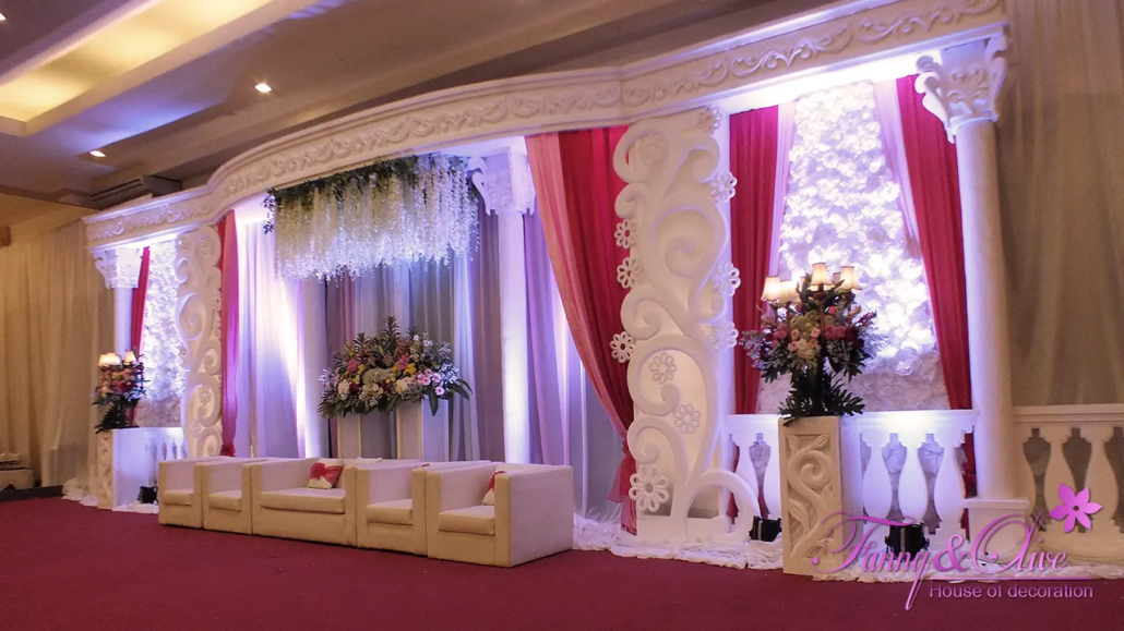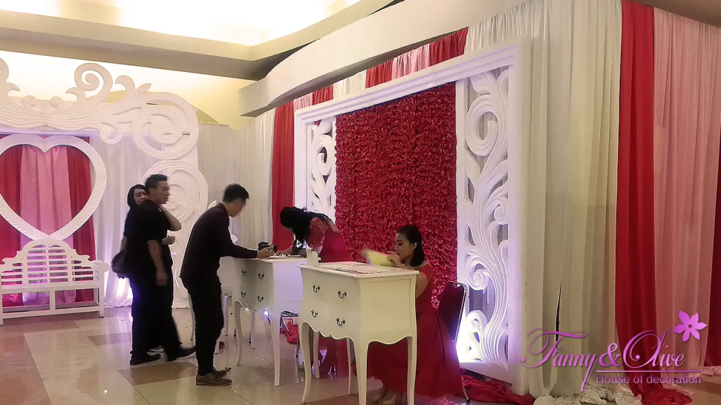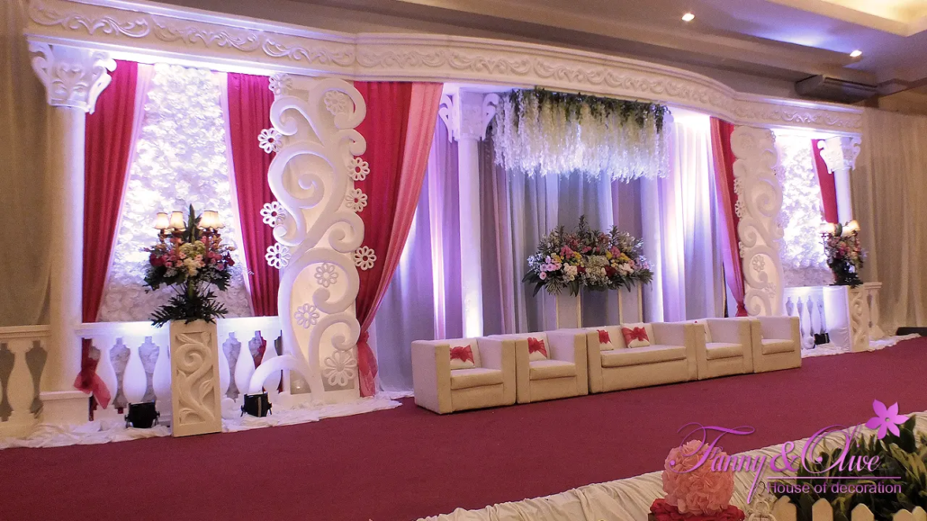 Dekorasi Pernikahan dengan tema warna merah, pink dan putih.