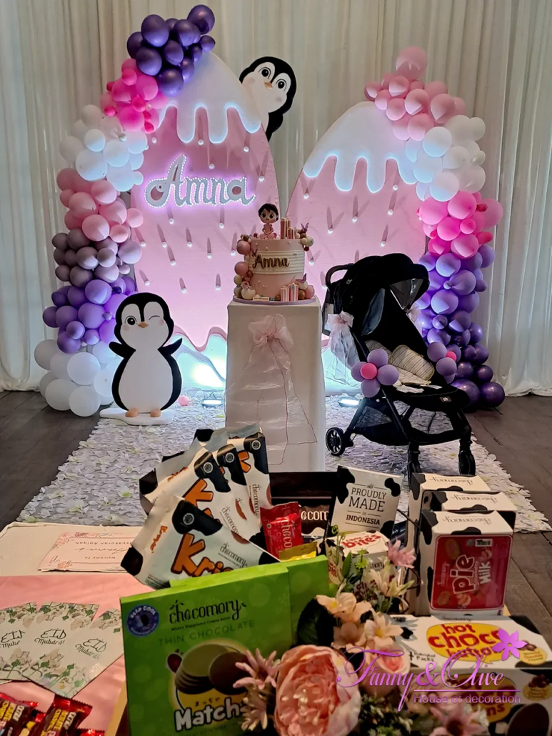 Dekorasi Syukuran Kelahiran Anak ini dibuat untuk acara syukuran sebagai ungkapan rasa syukur atas kelahiran putri pertama.