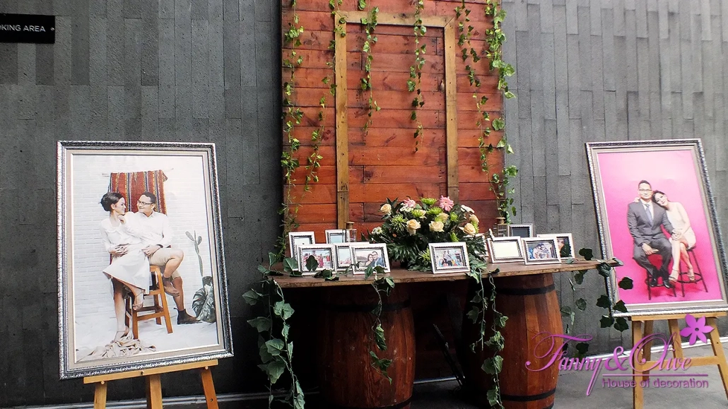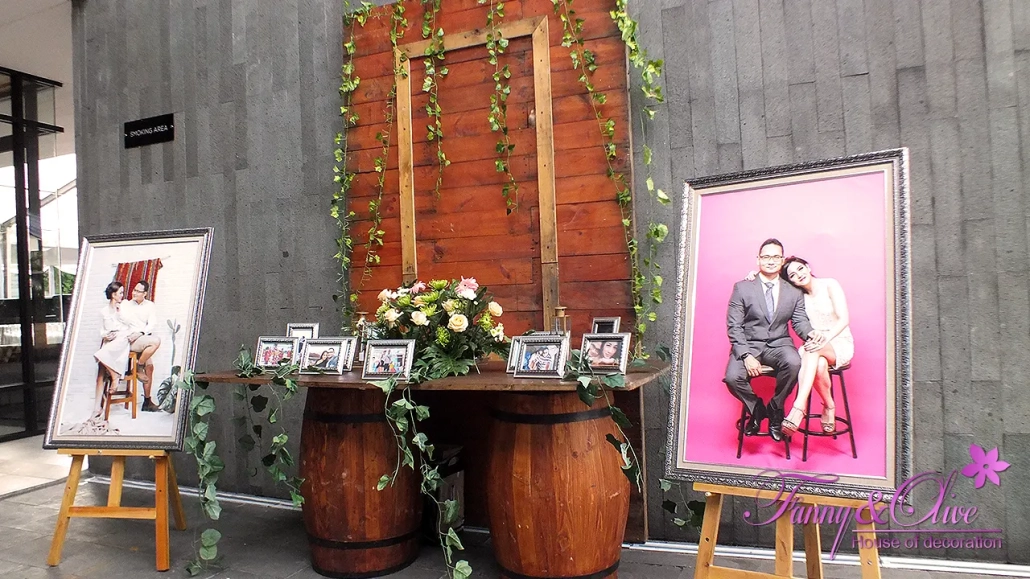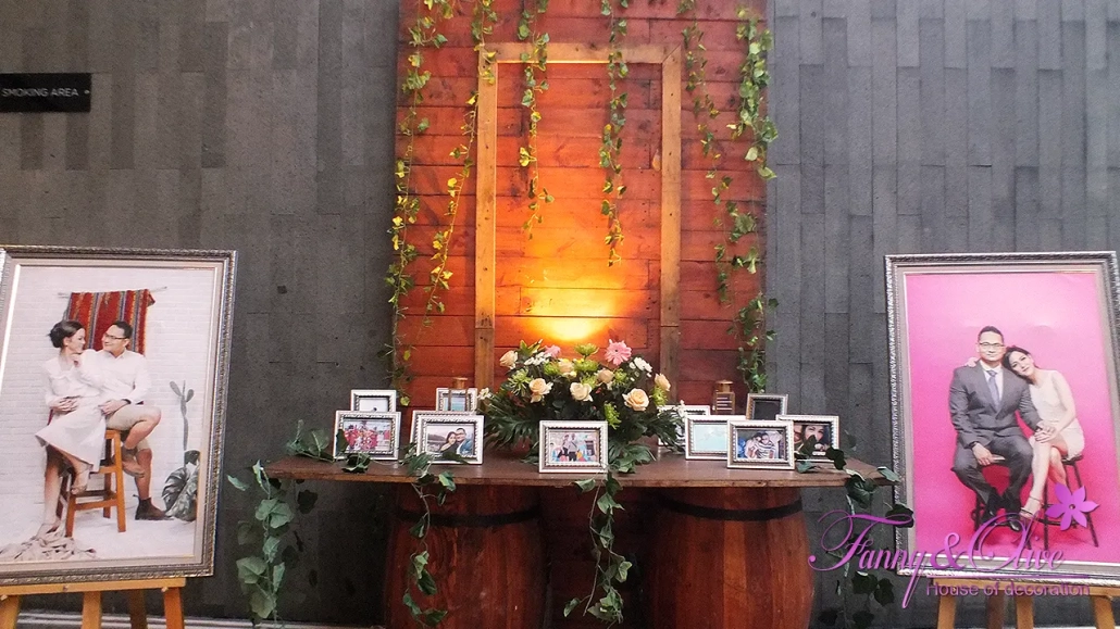 Dekorasi Tema Rustic ini menarik para pengunjung untuk berfoto sebelum acara resepsi dimulai.