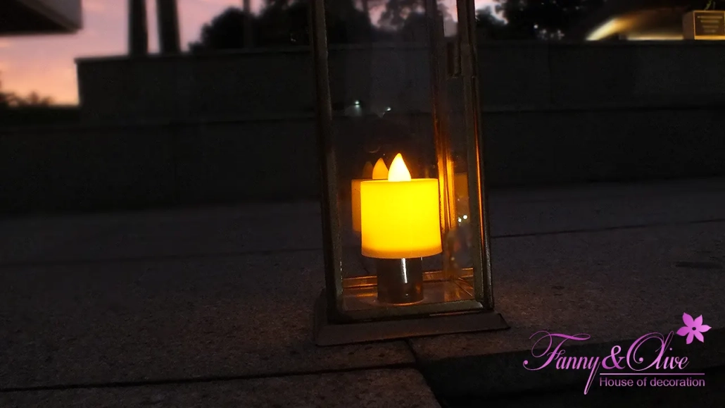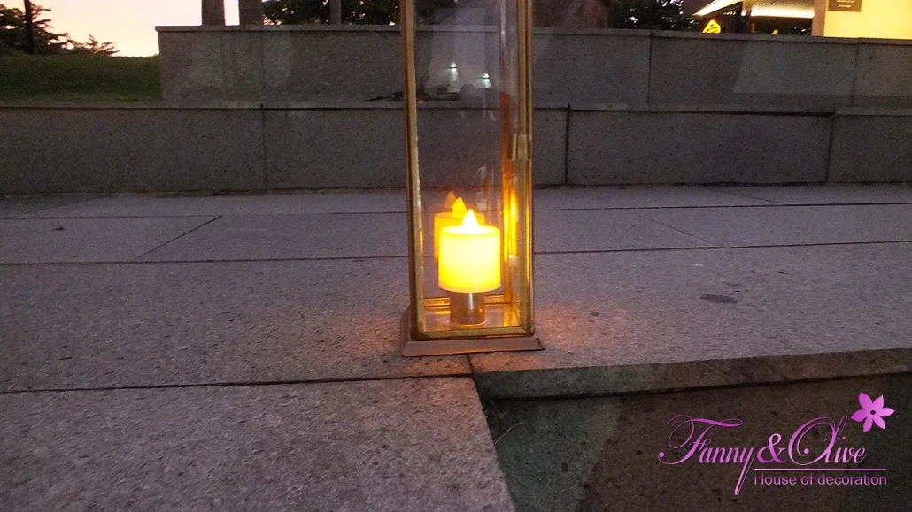 Di setiap sudut kiri dan kanan anak tangga tersebut kami juga meletakkan lilin elektrik di dalam kotak kaca.